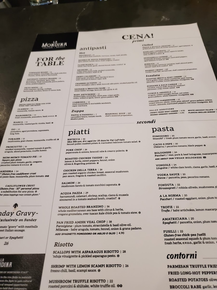 Even the simplest offerings, like the crispy bread served with roasted garlic EVOO, showcase the restaurant's commitment to quality and flavor. La Mondina also caters to various dietary needs, with plenty of options for adventurous eaters and a special kids' menu that impresses even the youngest diners.